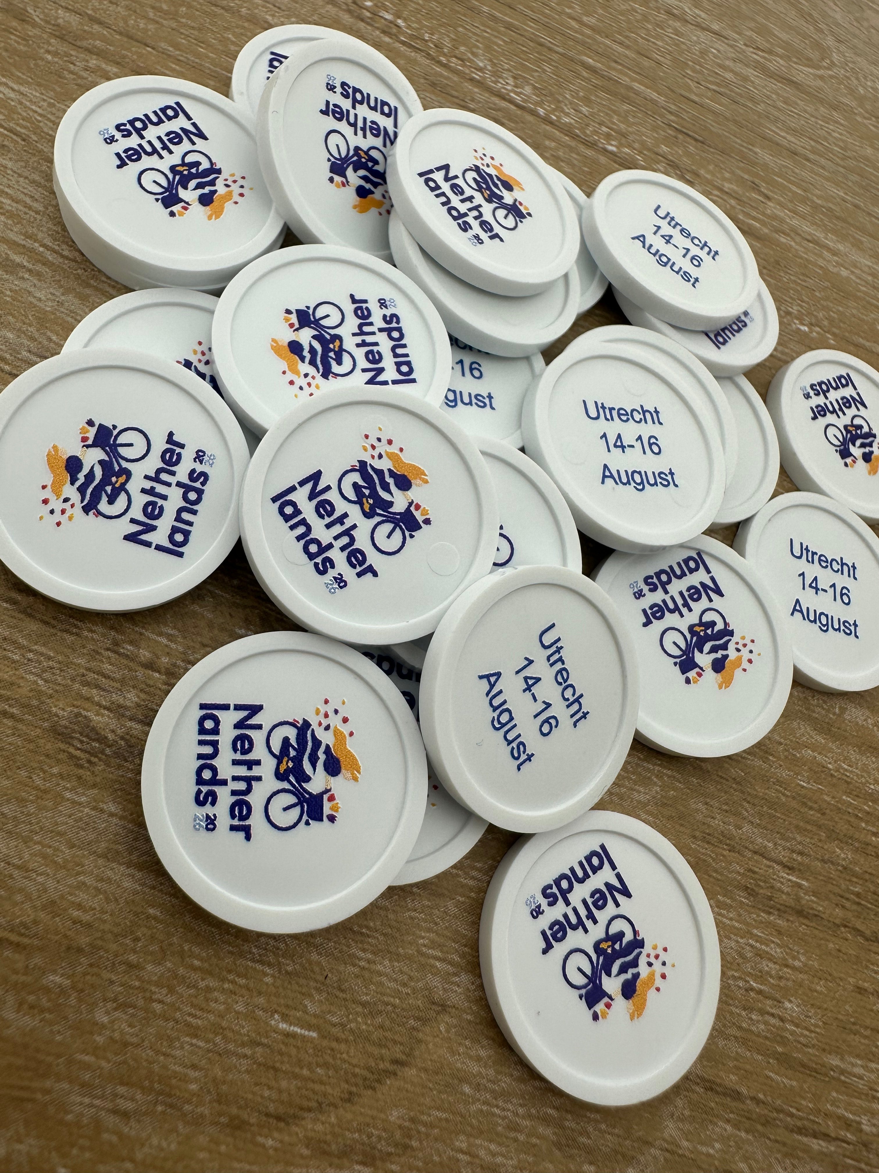 Personaliza tus propias fichas de plástico para carritos en formato de €1. Añade, por ejemplo, un texto, logotipo o ilustración en una o ambas caras. Son una herramienta práctica para liberar la cadena de un carrito de la compra. Se entregan en paquetes de 100 unidades. Leer más...