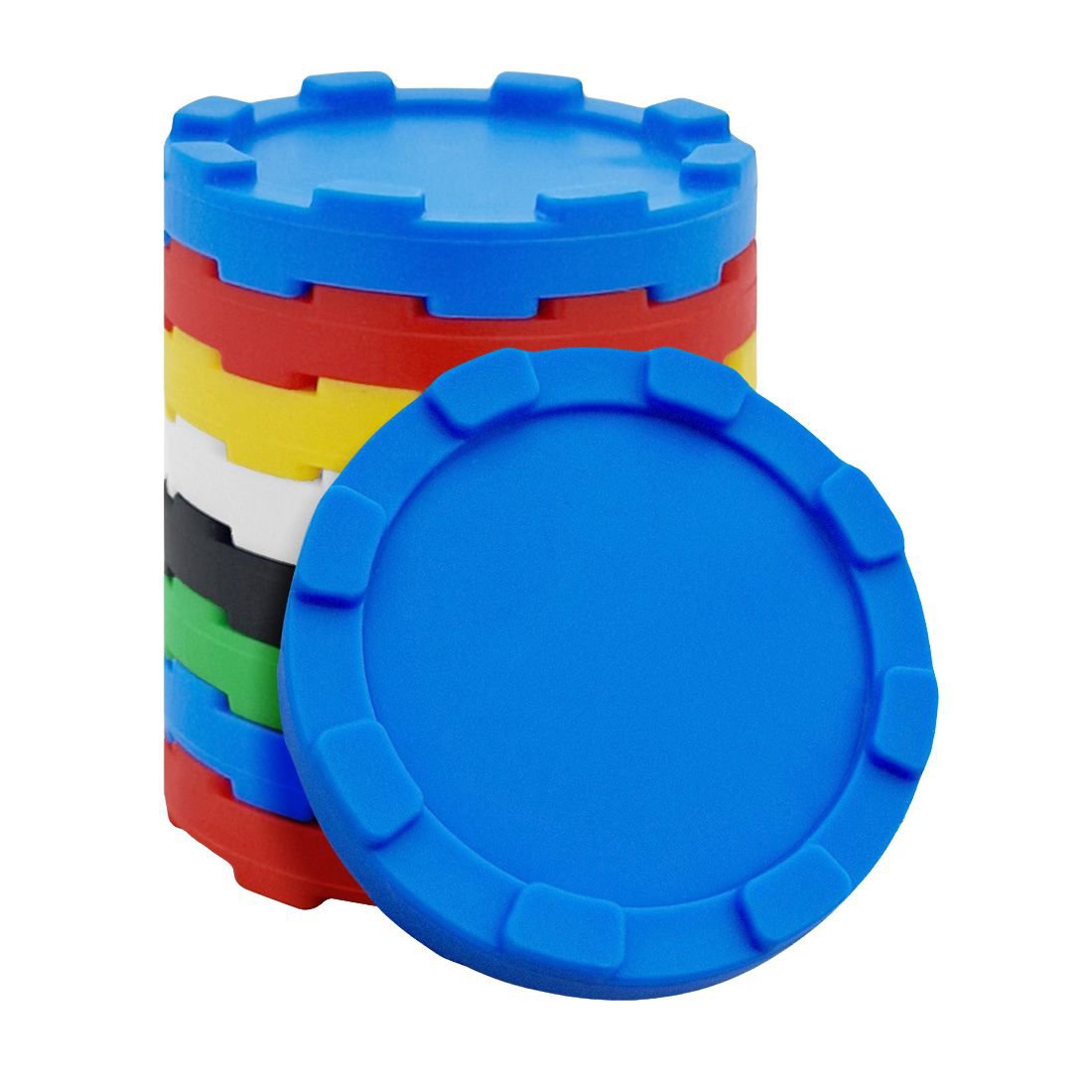 Las fichas apilables se suministran en paquetes de 100 piezas. Nos aseguramos de que los colores azul, verde, amarillo, rojo, blanco y negro se suministren en proporciones aproximadamente iguales. Si necesita más fichas apilables de un color específico, le recomendamos pedir más.