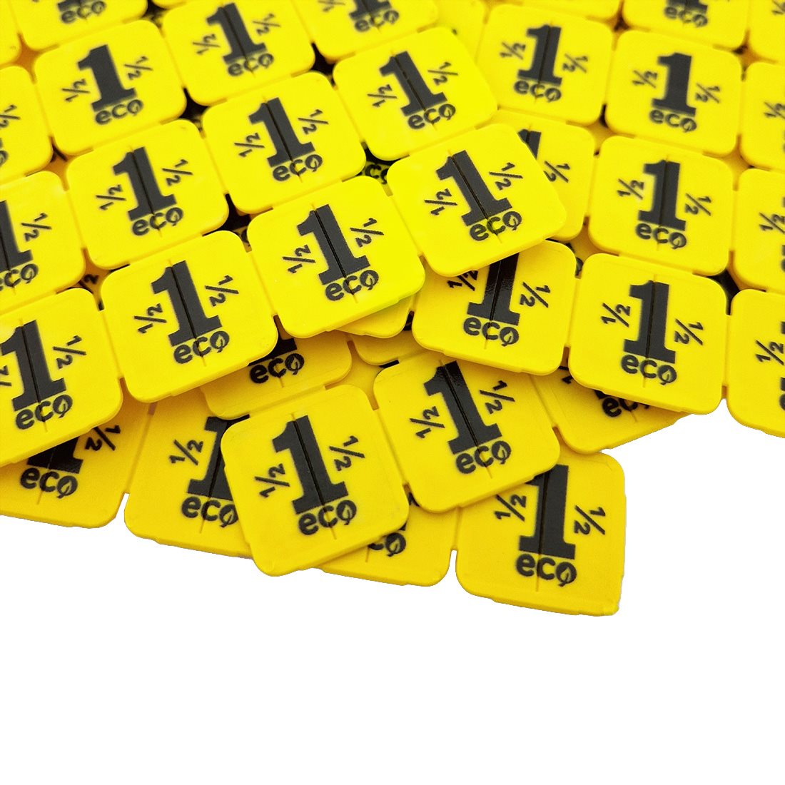 Fichas biodegradables hechas de almidón de patata. Cada ficha tiene el número 1 con 1/2 en cada lado, lo que significa que también se pueden usar como 50 centavos. Ideales para fiestas, festivales y más. Se venden en paquetes de 1000 fichas.