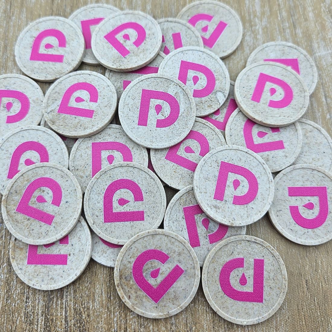 Imprime tu diseño en estas fichas de fibra de madera. Úsalas como fichas en festivales, artículos promocionales en eventos o como fichas de juego durante actividades. Imprime tu logotipo, imagen o texto a todo color. Se venden por 100 unidades. Leer más...