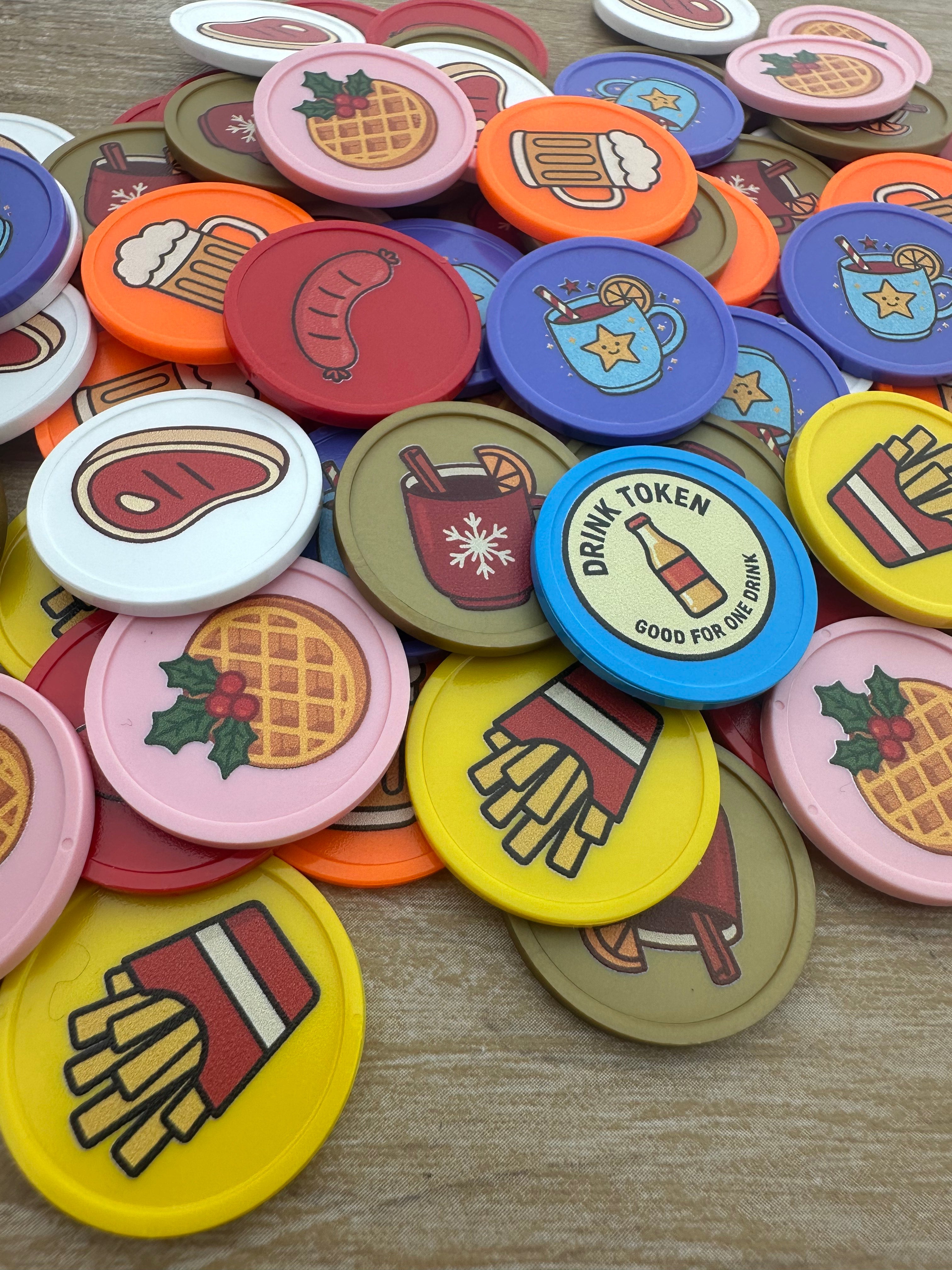 Imprime tu diseño a todo color en una ficha de plástico. Esta ficha de 29 mm es un éxito de ventas e ideal como ficha, para copas o para bebidas. Ideal para todo tipo de fiestas, eventos y festivales. Disponible en pequeñas y grandes cantidades.