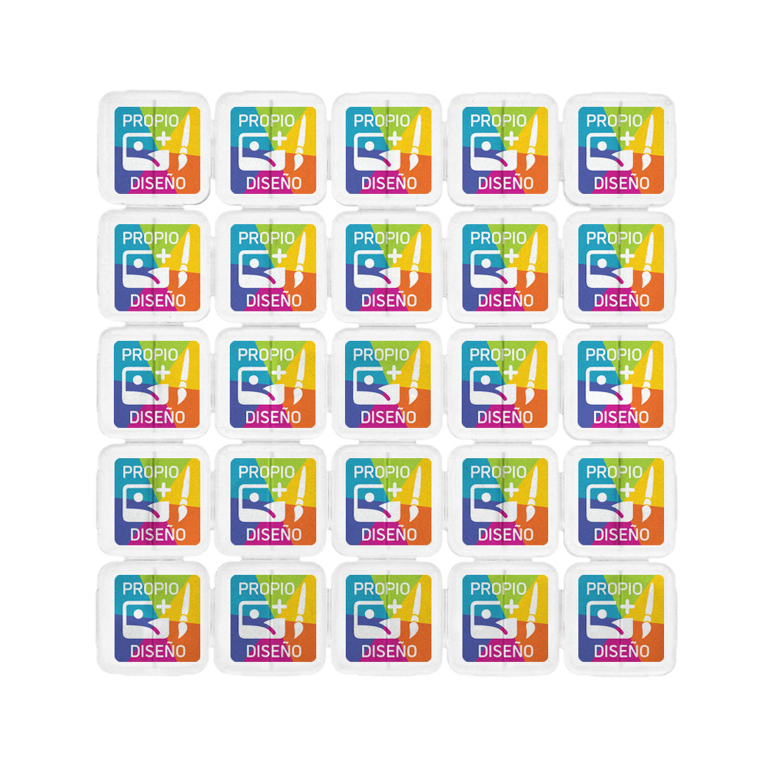 Esta fichas para festivales están hechos de plástico transparente, lo que le da un toque divertido a tu evento. Vienen en laminas de 25 monedas. Cada ficha mide 24 x 24 mm. Las líneas de corte facilitan su separación. Solo la ficha del medio no tiene línea de corte y no se puede partir. Un paquete contiene 40 laminas de 25 fichas cada uno, para un total de 1000 fichas. Puedes crear tus propios fiachas para tu festival a partir de 15 000 unidades.