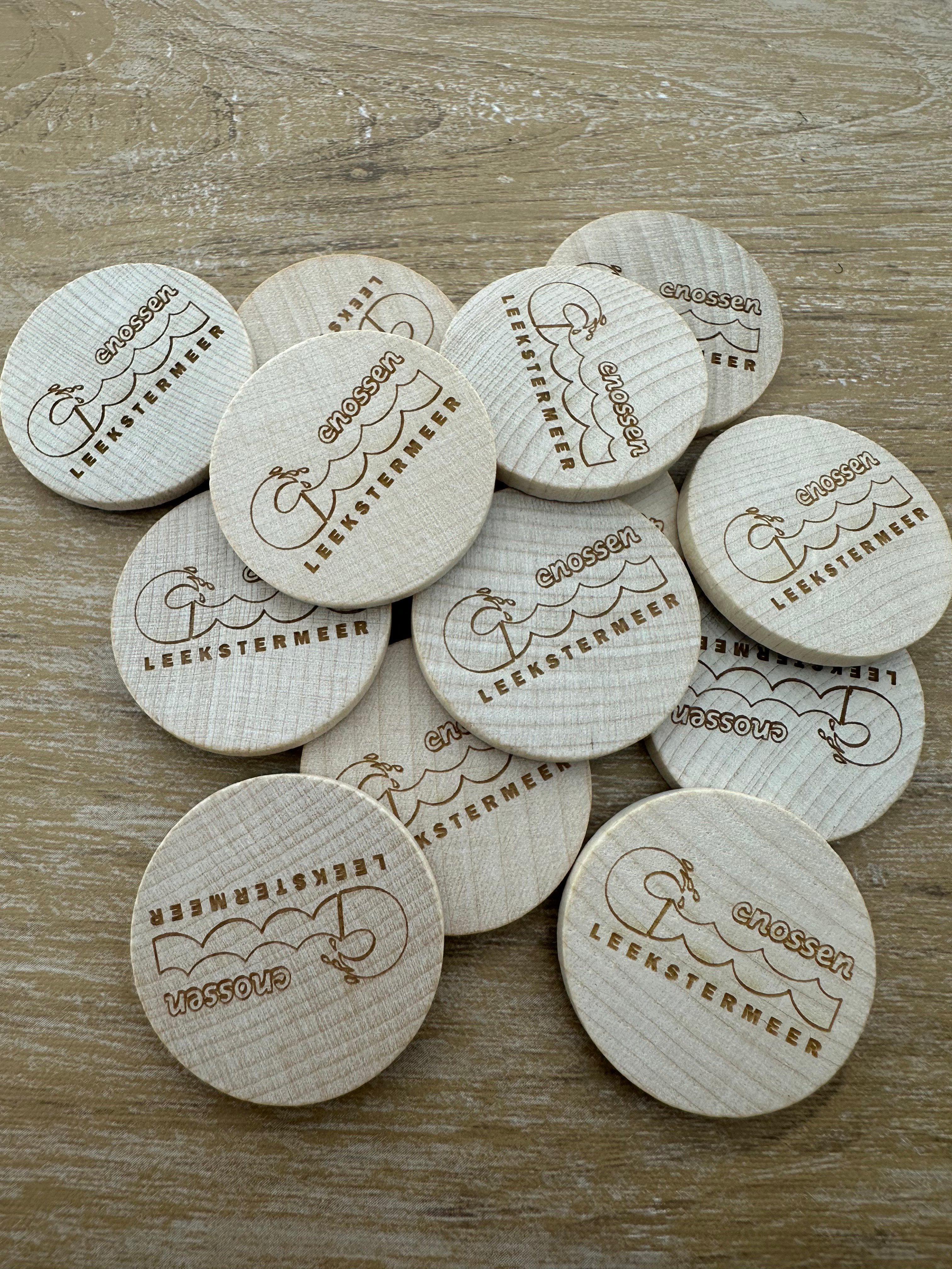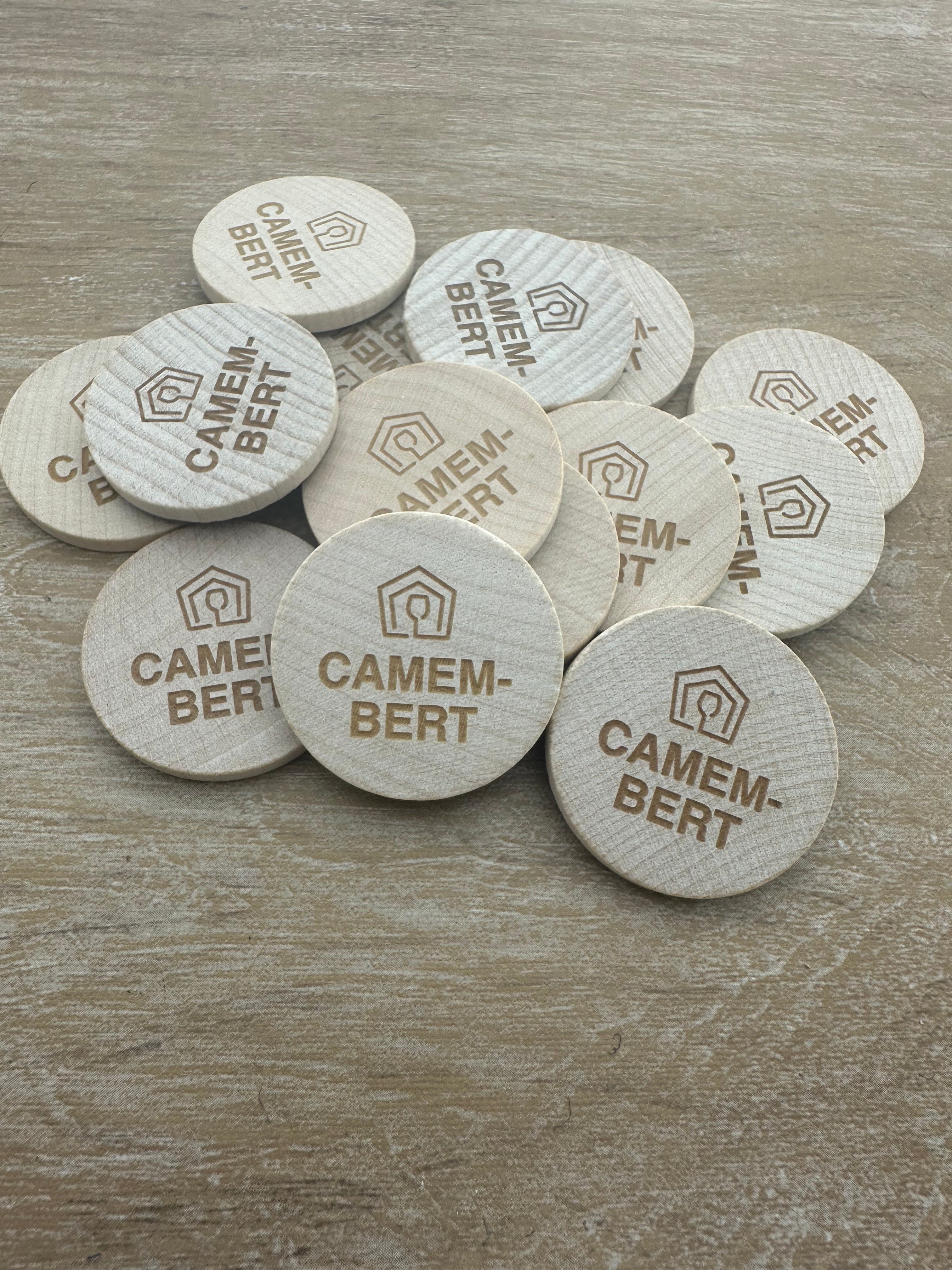 Fichas de madera grabadas personalizadas Ø37 mm - 100 unidades