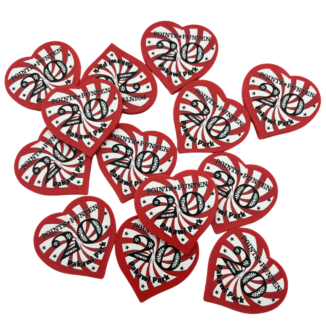 Fichas de plastico corazon personalizadas 40x40 mm - 100 unidades