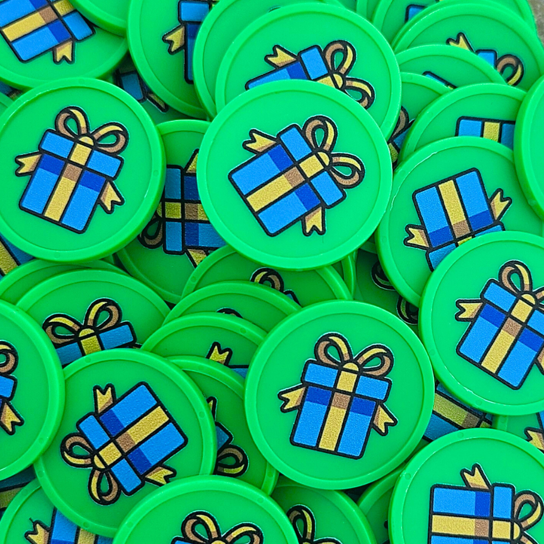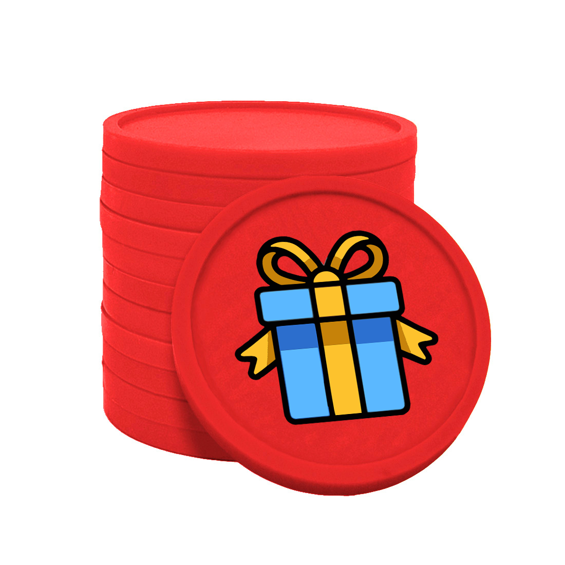 Fichas de plastico con icono de regalo Ø29 mm - 100 unidades