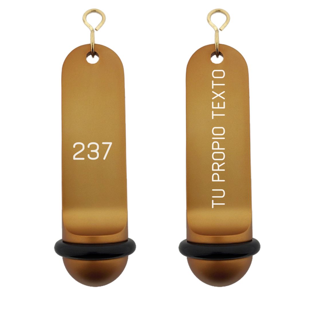 El grabado se realiza en color plateado, tanto en la parte frontal como en la parte trasera del llavero.