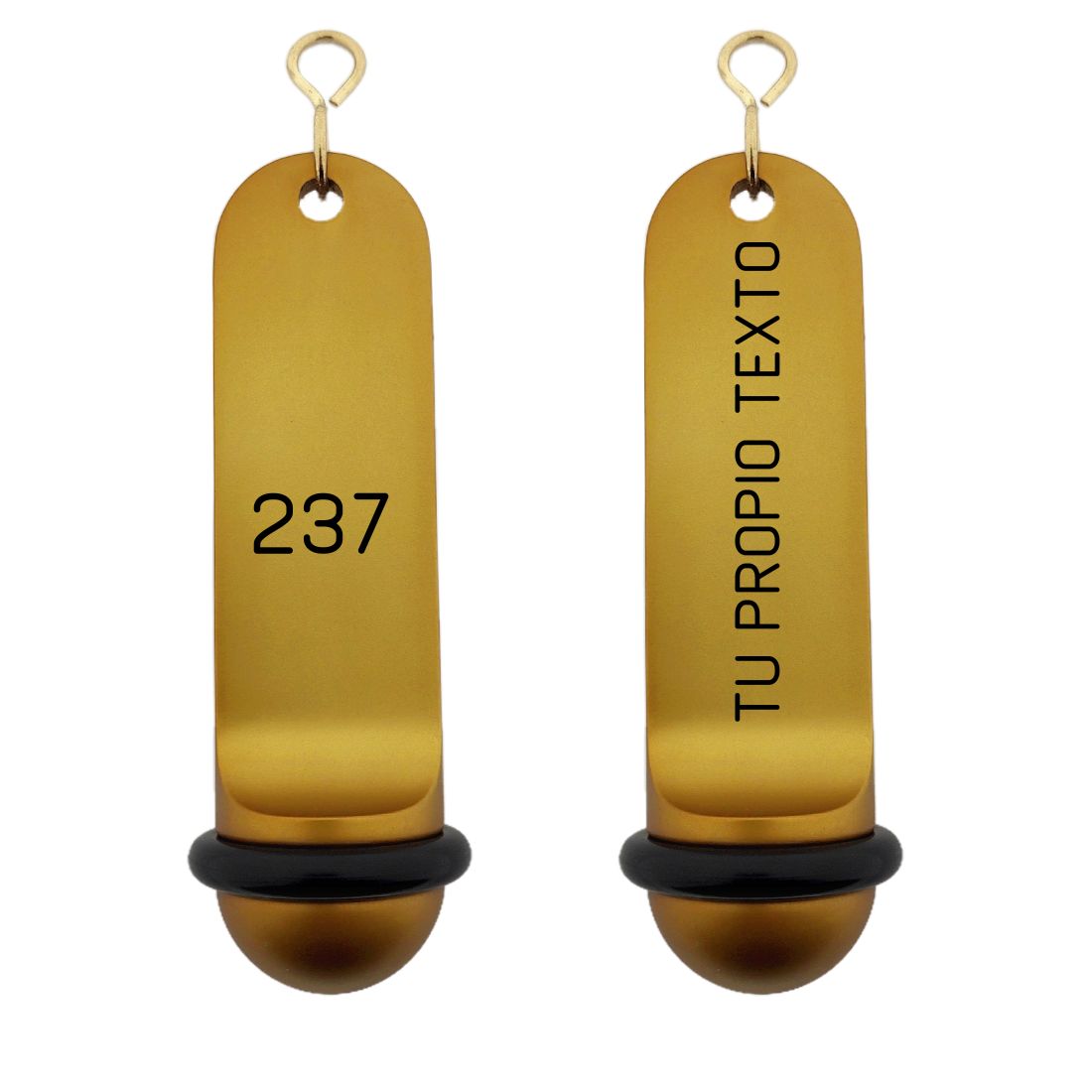 El contraste entre el grabado negro y el fondo Dorado ofrece una apariencia clara, elegante y profesional. El llavero Big Classic viene con un gancho en forma de S para fijarlo fácilmente a una anilla portallaves.