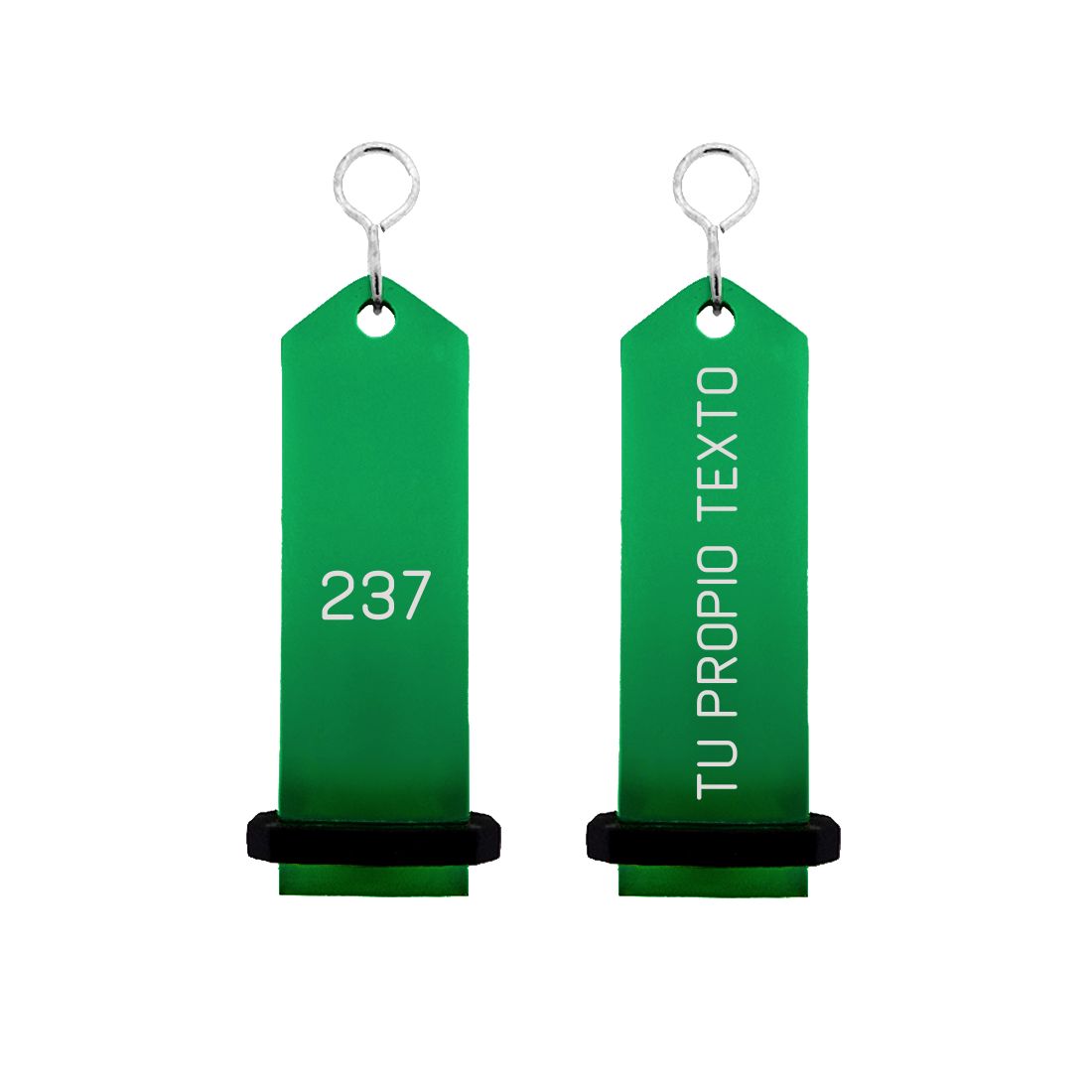 Descubre el versátil llavero de hotel Bumerang en color verde con grabado en blanco Personalízalo con texto, números o tu logotipo para un diseño único que refleje la identidad de tu servicio. Fabricado en aluminio macizo, con unas dimensiones de 30x100 mm. Leer más...